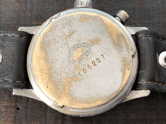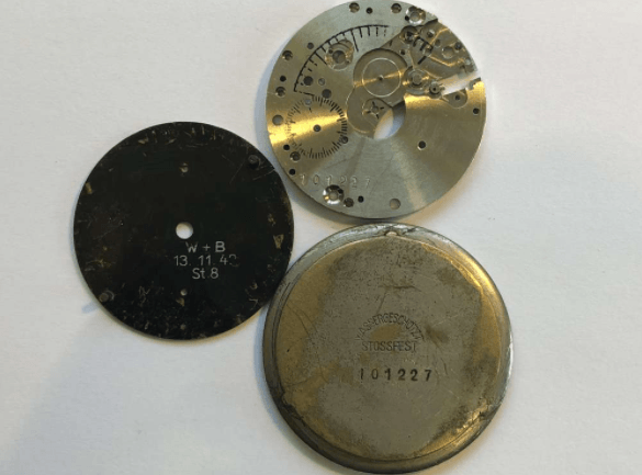 While the later watches had the movement number visible on the movement, with these very early Hanhart watches the number is engraved on the movement underneath the dial