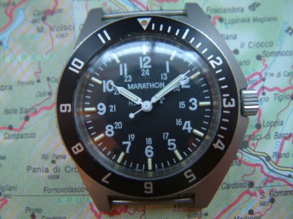 These watches were issued to United States Air Force and Navy pilots during Operation Desert Storm, the watch has a quartz movement and self energizing tritium gas-tube luminescence. The case is military style with fixed strap bars. It is a direct descendant of the Benrus Type II military dive watch.
