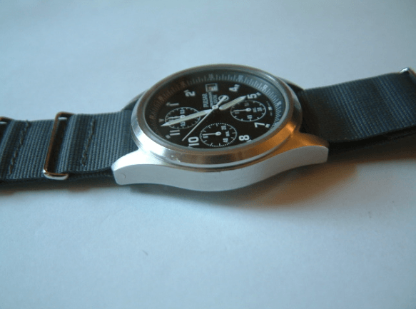 The stainless steel case is in very good condition with just very minor marks from service usage and the inevitable NATO strap mark on the rear casing. The case has fixed bars for use with a NATO style watch strap.