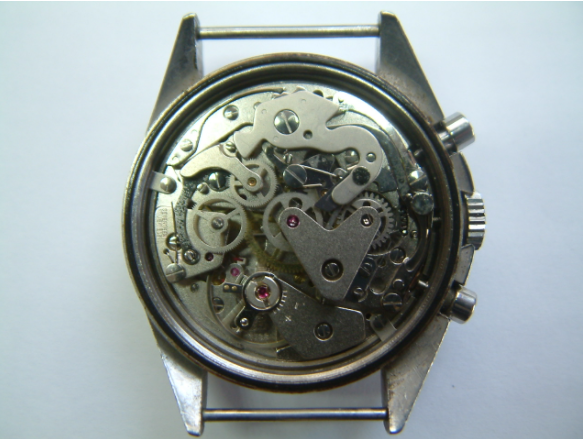 The movement is the Valjoux 7733 chronograph movement common to these chronographs and has been fully serviced. All functions are operating correctly and the second hand snaps back to the 12 'o' clock marker as it should.