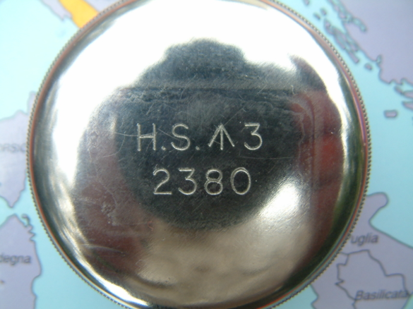 HS is the Hydrographic Service designation used by the Royal Navy for grading of wrist and pocket watches. HS 3 designates a Deck Watch adjusted for isochronism in a minimum of two positions.