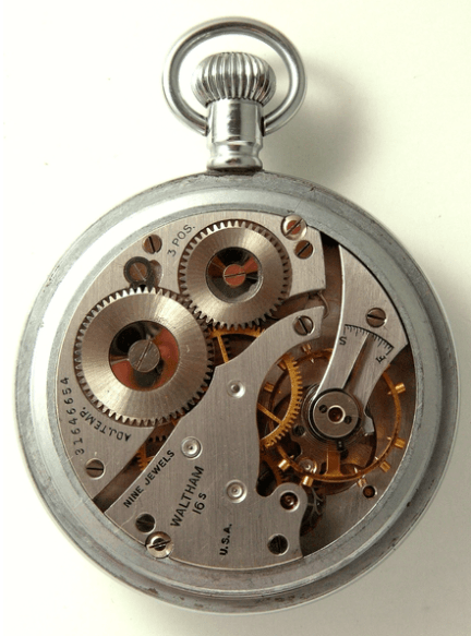 This is a Waltham RN Nuclear Submarine Pocket Watch, black dial with a non-luminous markers and hands.
