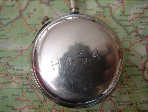 The steel chrome plated case is in very good condition and the rear screwed case has the Hydrographic Survey HS4 engraving which defines the watch as a dashboard mounted watch.